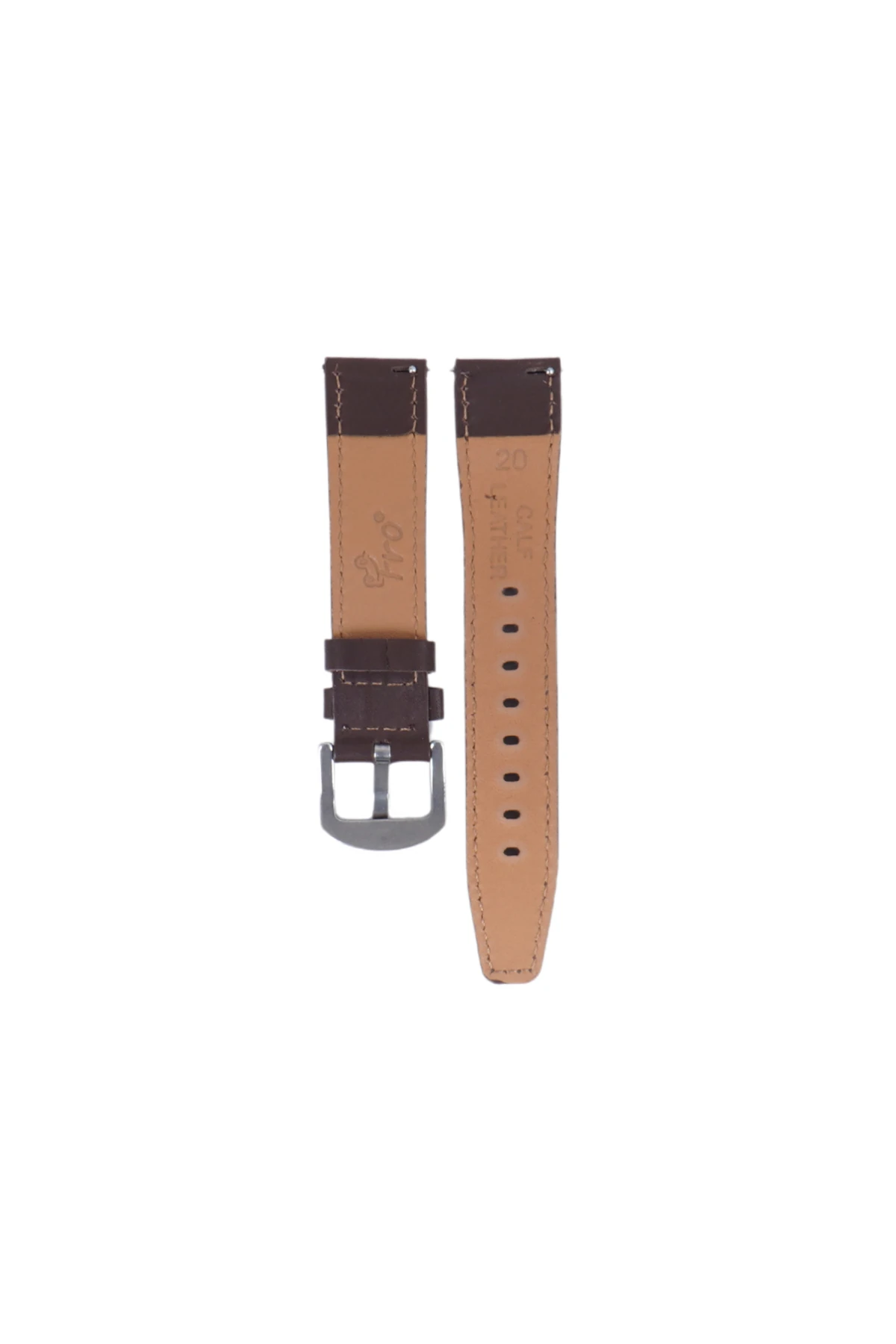 Fro LW38-43 20 mm Hakiki Deri Düz Kahve Kordon Silver Toka