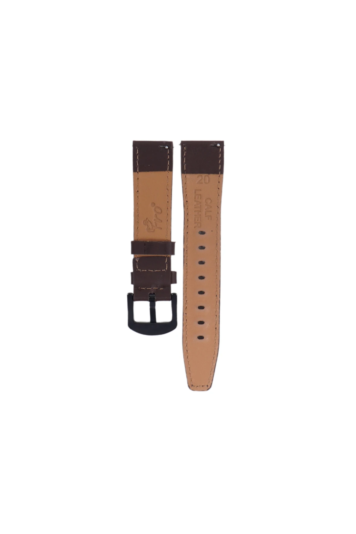 Fro LW38-43 20 mm Hakiki Deri Düz Kahve Kordon Siyah Toka