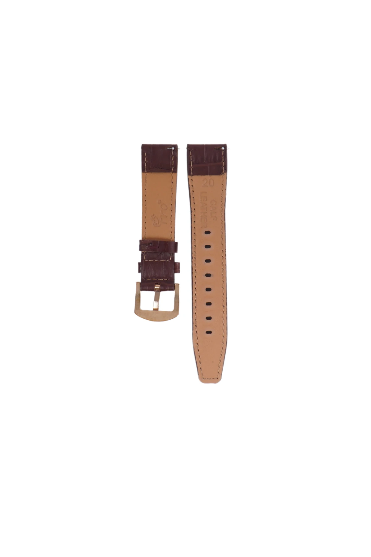 Fro LW38-43 20 mm Hakiki Deri Kroko Kahve Kordon Gold Toka