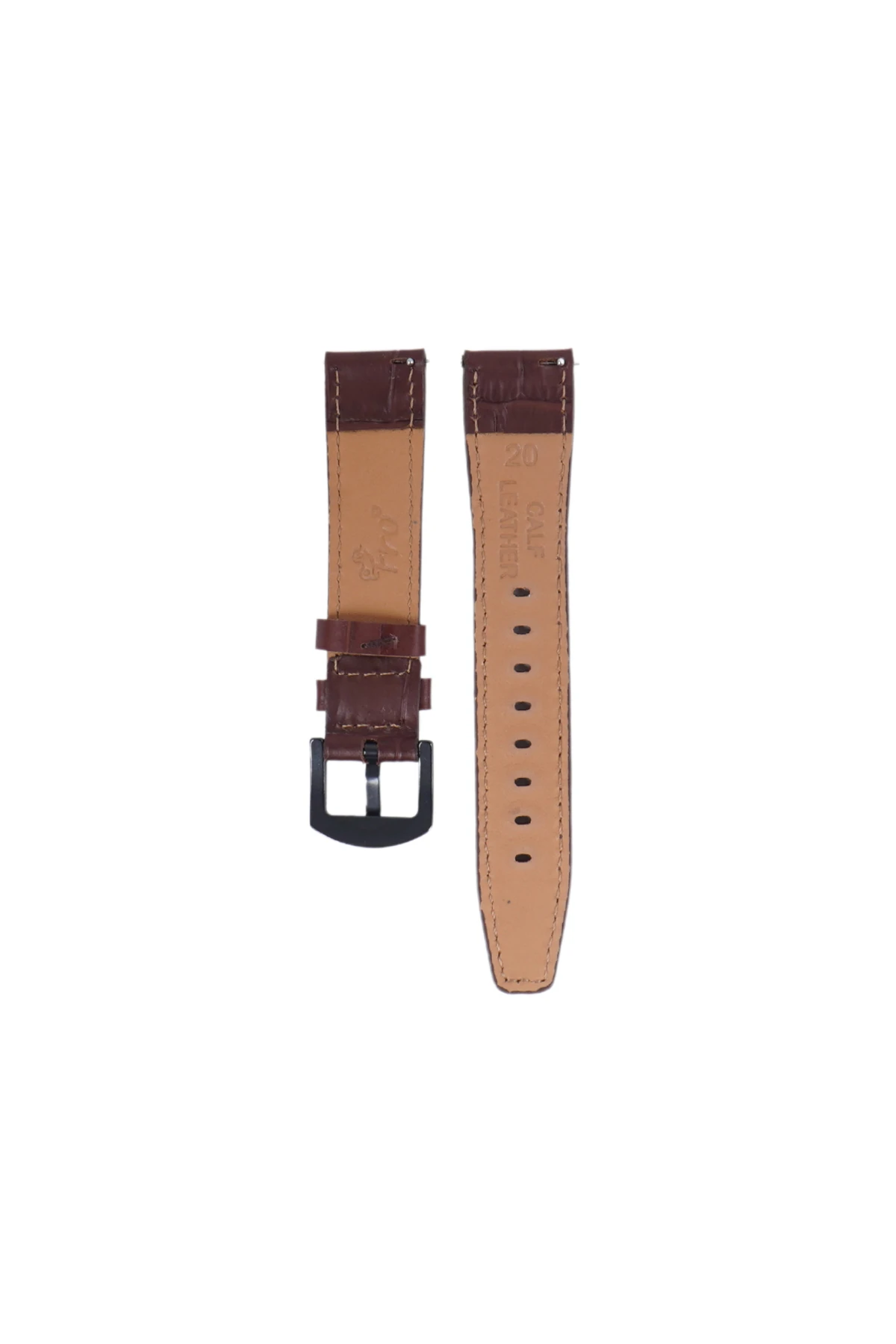 Fro LW38-43 20 mm Hakiki Deri Kroko Kahve Kordon Siyah Toka