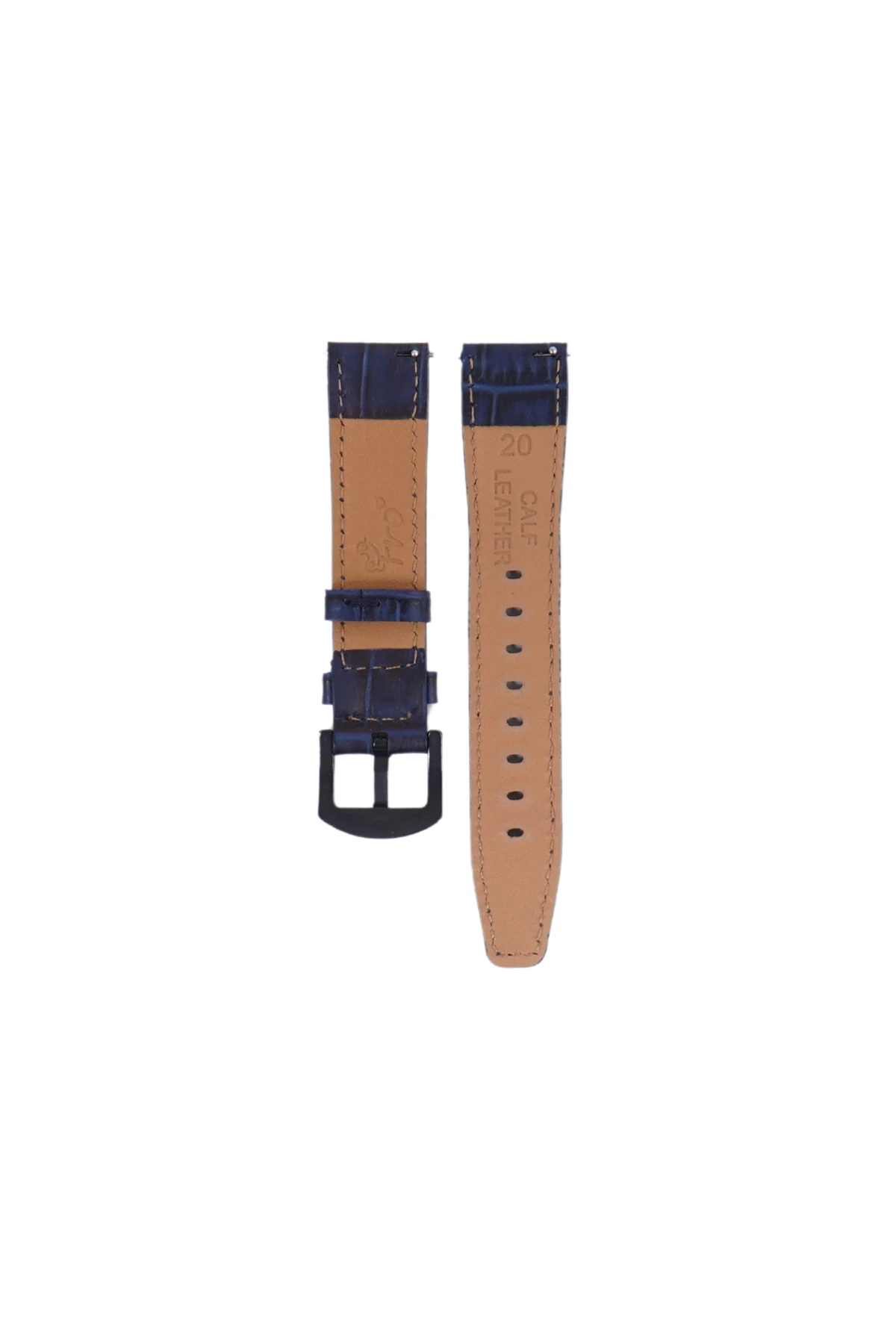 Fro LW38-43 20 mm Hakiki Deri Kroko Lacivert Kordon Siyah Toka